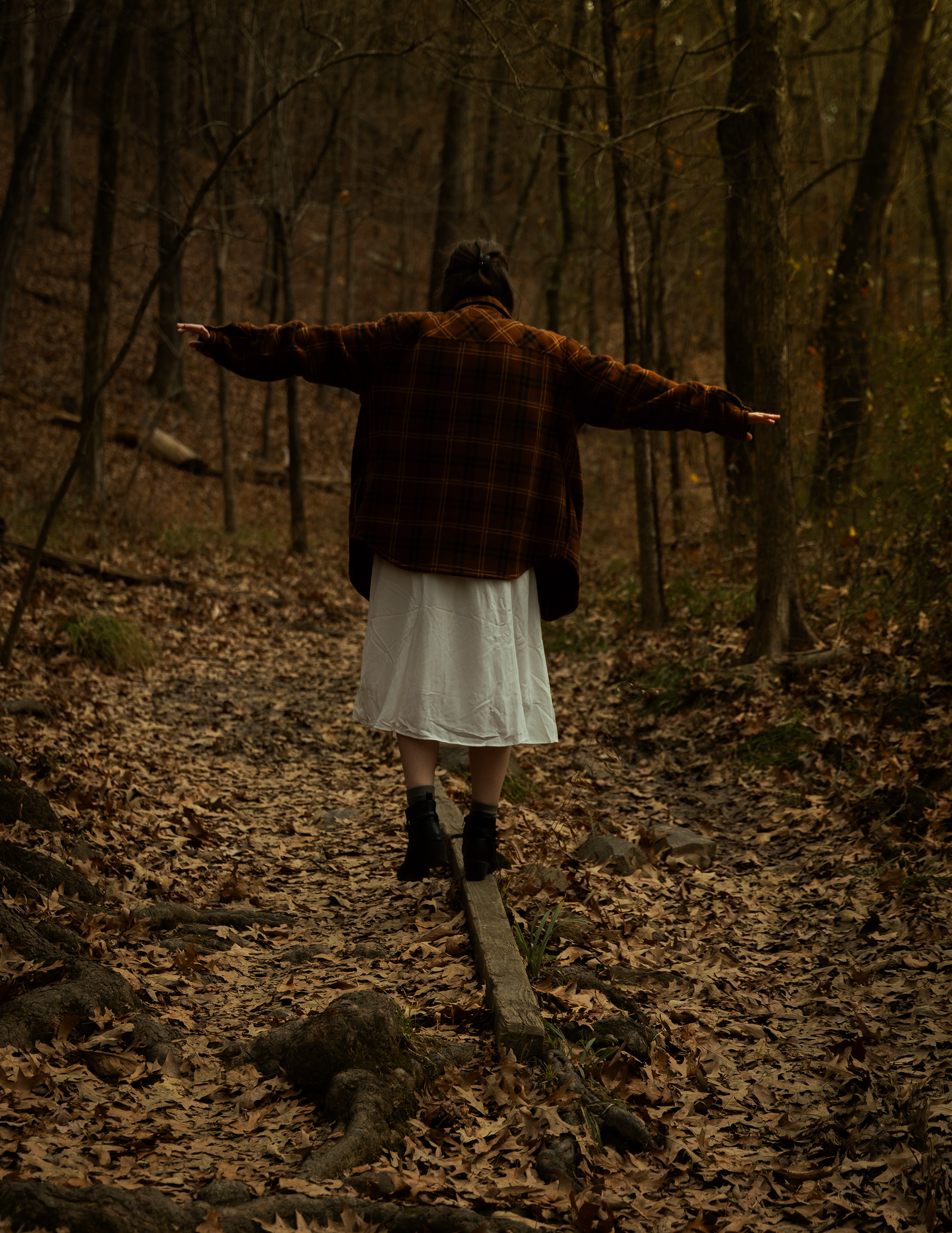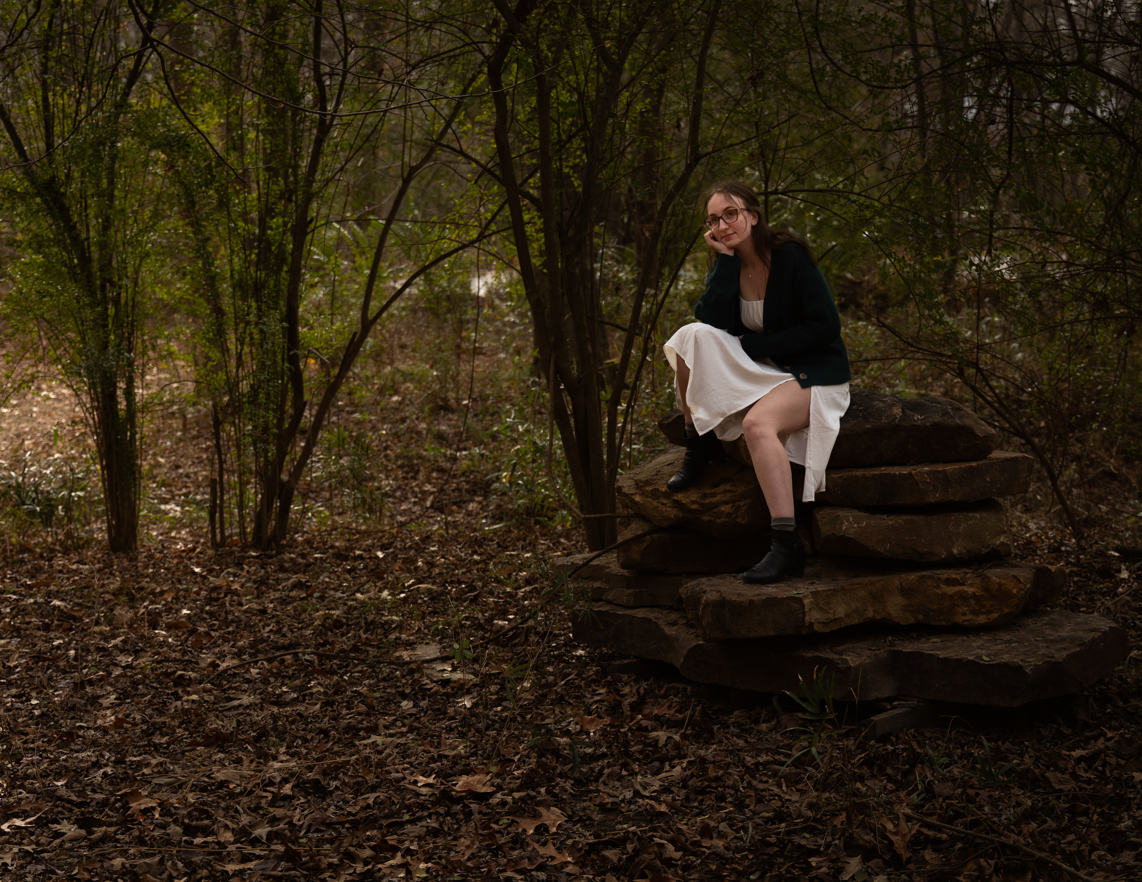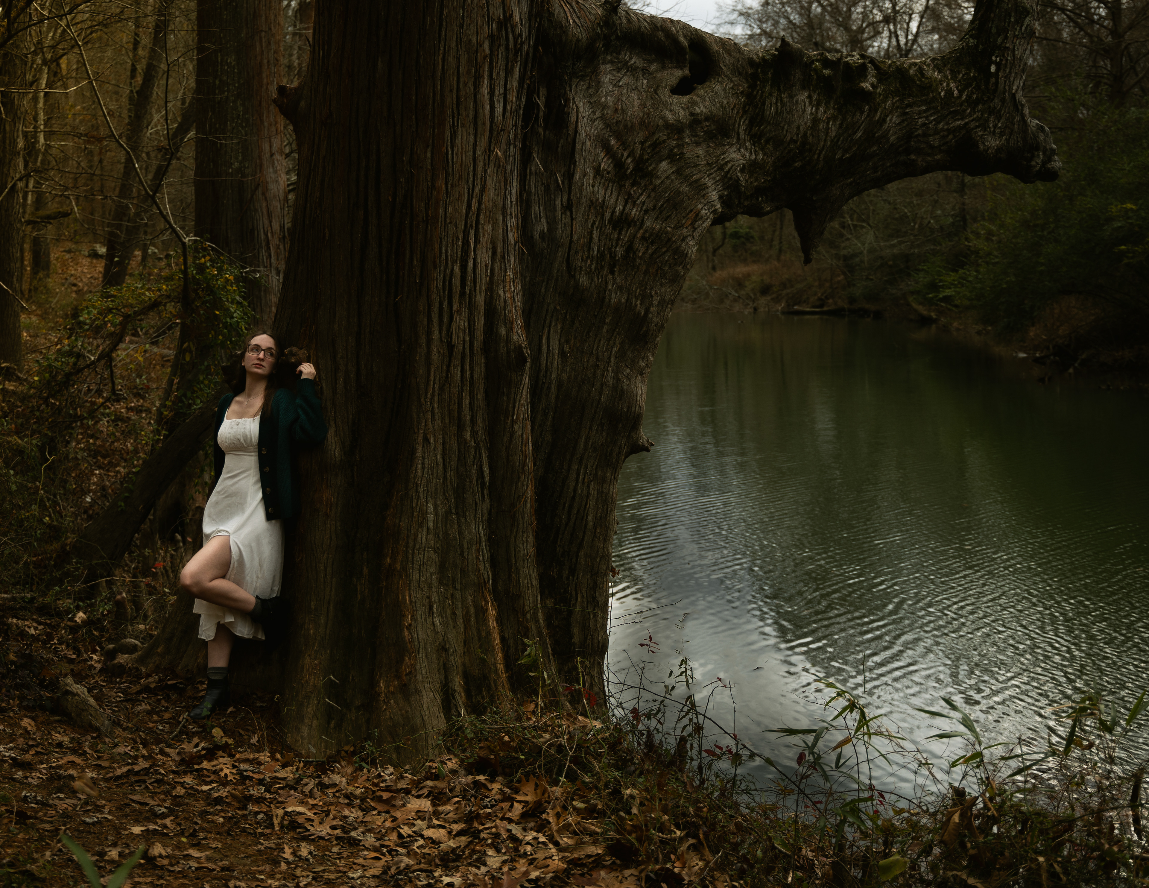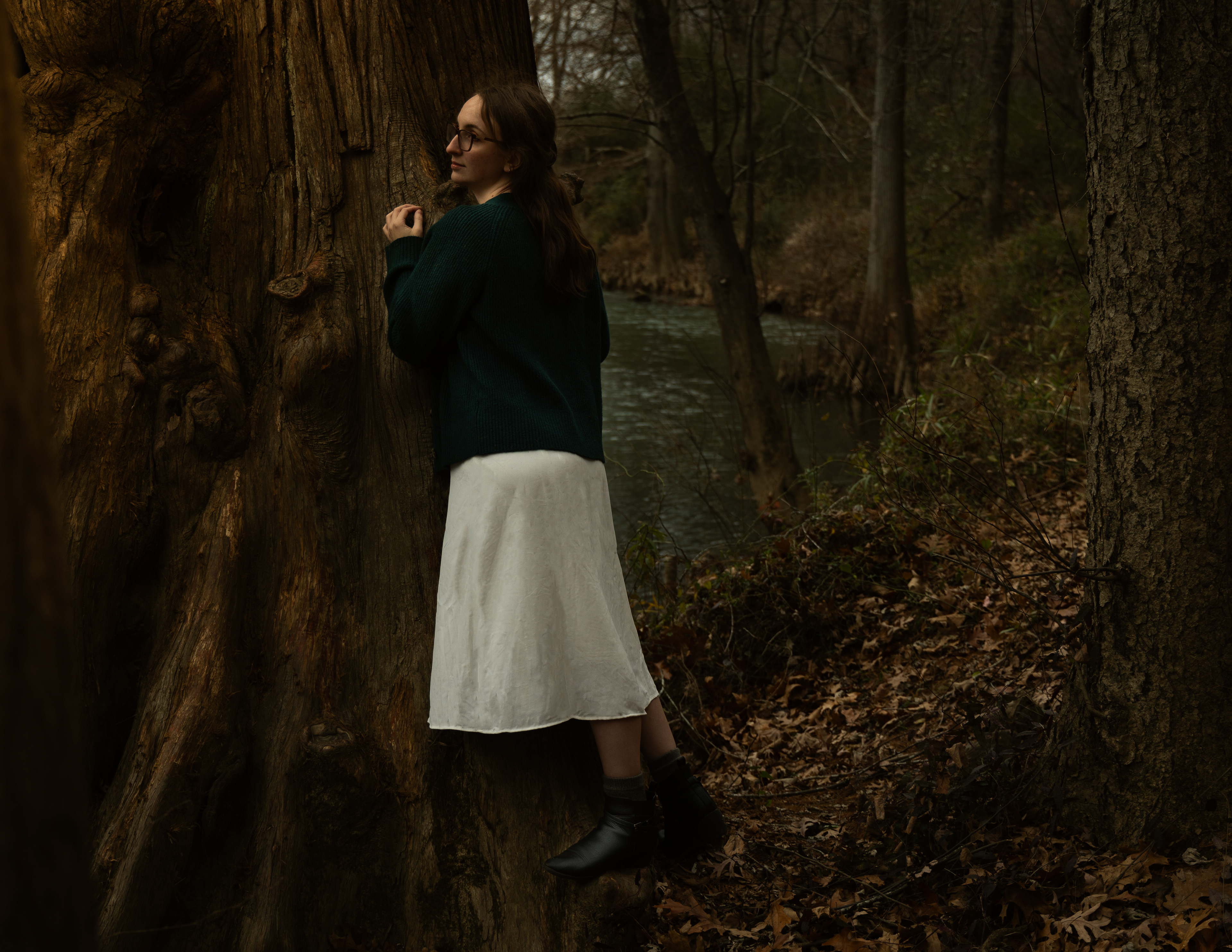 In the subtle and simplicity of life we land somewhere in the world of Taylor Swift’s Folkmore and Evermore albums. Taking the city lights away from the fast pace hustle and bustle of city life. Scaling back to create a delicate and intimate experience for the viewer which allows us all to feel connected to the world around us by encompassing the deep forest into this photoshoot. Kelsey mentions “the Folkmore and Evermore photoshoot was our first shoot together”. After brainstorming, we decided to combine the albums to create our Folkmore photoshoot. With ideas based on the songs like “Seven” and “Willow,” the possibilities were endless. The lyric “please picture me in the trees” (Taylor Swift) was a driving force as we bared the unusually cold Arkansas winter for this photoshoot.